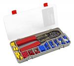 This terminal assortment consists of a wide variety of clips, ties, terminals and connectors. Industrial quality hardware is combined with male and female quick disconnectors organized in a storage case and color coded by size.