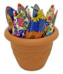 12 Great Tools: The floral garden hand trowels are used for planting, transplanting, weeding, moving and smoothing soil. The trowels feature an ergonomic handle design. The hand cultivators are used to loosen packed soil. The tools can also be used to dislodge small weeds around perennials and annuals and it is great for smoothing soil in planters and beds. These great tools come in a flower pot for you to display your favorite plant while ensuring it always gets the sunlight it needs.