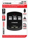 3-Outlet Wall Tap w/ 2 USB Ports - Black