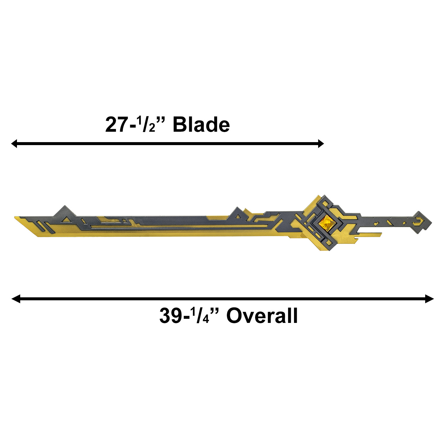 Product SummaryImmerse yourself in the legendary world of Teyvat with this 39-1/4" Summit Shaper Sword Foam Replica - Genshin Impact Cosplay Weapon, a full-size detailed prop inspired by the iconic 5-star sword from Liyue. Crafted for fans seeking an authentic yet safe accessory, this replica captures the majestic golden Cor Lapis blade and intricate hilt design symbolizing ancient oaths and unyielding justice. Its high density foam construction delivers realistic visuals while ensuring lightweight comfort and safety for extended wear at conventions or photoshoots. Perfect for completing your Traveler, Ningguang, or any Geo-element cosplay ensemble, it stands out with premium detailing that brings the game's epic mountain-cleaving lore to life. Whether displayed proudly or wielded in action, this piece offers exceptional value and durability compared to lesser props. High Density Foam ConstructionBuilt from durable high density foam, this sword provides a safe, lightweight alternative to metal replicas while maintaining a solid feel and resistance to wear during active cosplay use. The material ensures no sharp edges, making it ideal for events, photos, and light LARP without compromising on structural integrity. Full Size Highly Detailed ReplicaFaithfully replicating the Summit Shaper's signature grey and gold aesthetic, this prop features precise geometric patterns, a glowing amber gem accent, and the powerful blade shape drawn directly from Genshin Impact lore. Every curve and emblem is meticulously sculpted for screen-accurate authenticity that elevates your costume. Impressive Dimensions for Visual ImpactMeasuring 39-1/4 inches overall with a commanding 27-1/2 inch blade, this full-length sword delivers the commanding presence of the in-game weapon. The balanced proportions and extended hilt allow natural handling, enhancing both display appeal and dynamic posing opportunities. Premium Cosplay and Display ReadyDesigned specifically for Genshin Impact enthusiasts, this foam sword excels in convention settings, cosplay competitions, and home collections. Its eye-catching metallic-style finish and sturdy build make it a standout choice over basic alternatives, offering long-lasting enjoyment for fans of all ages. Features