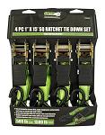 4 - pc. 1" x 15' SQ Ratchet Tie Down Set - Grip