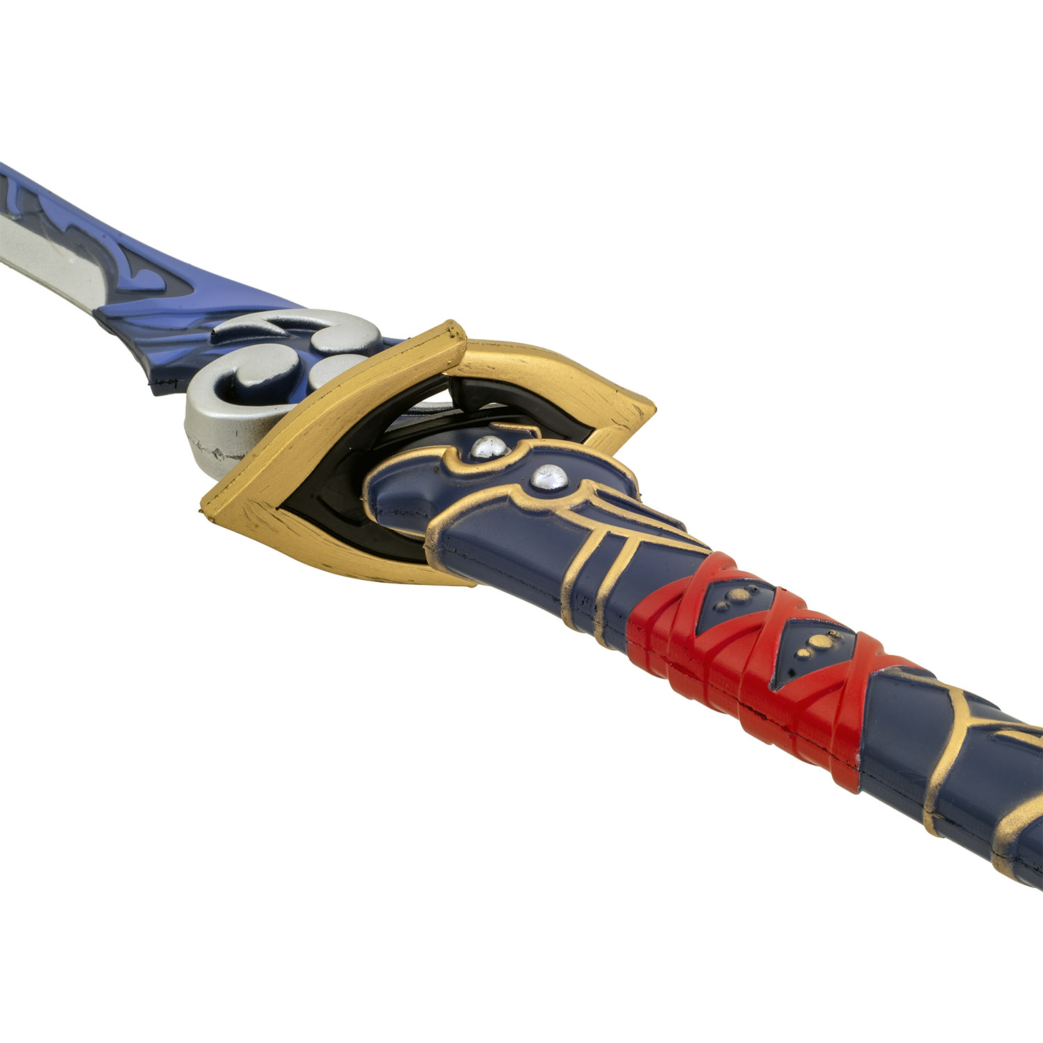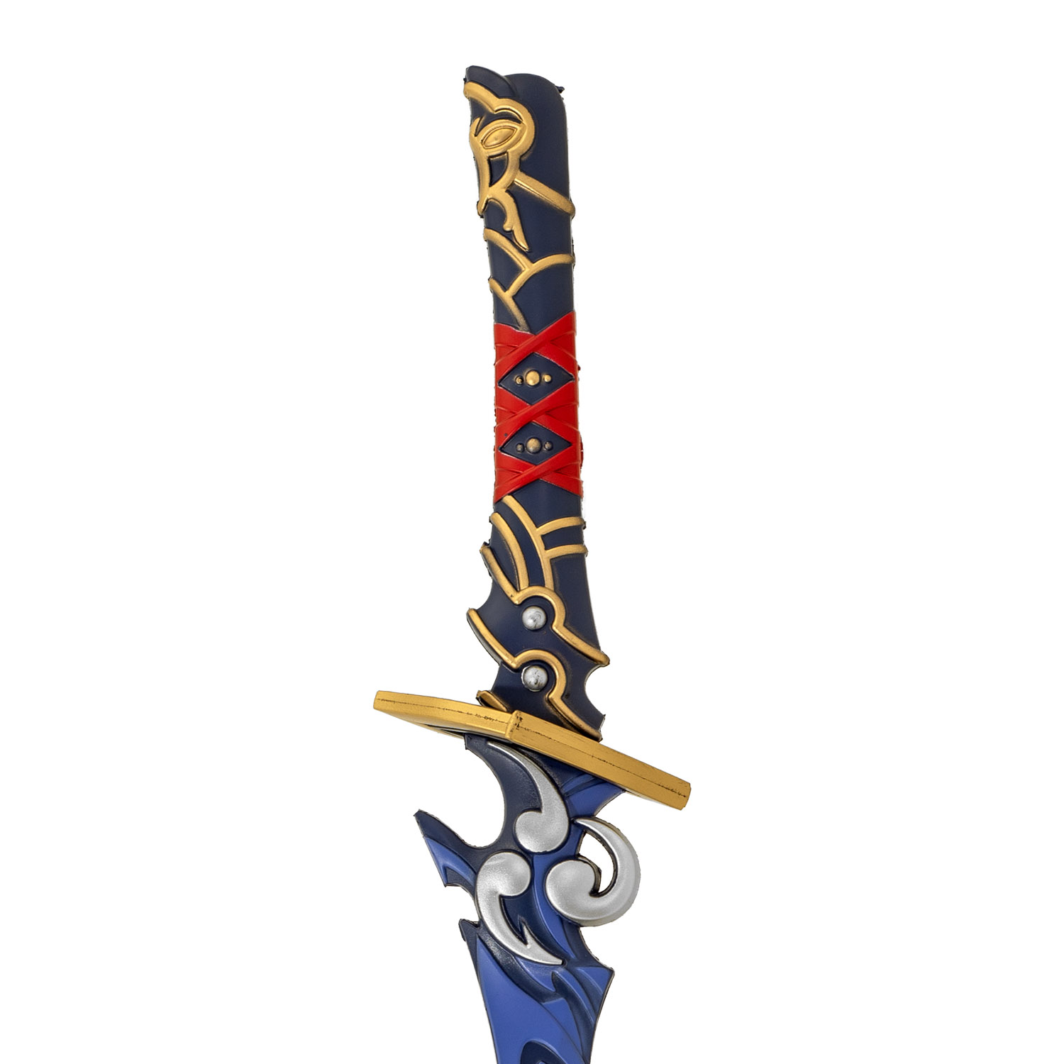 Product SummaryStep into the role of the Raiden Shogun with this impressive 41.5" Beelzebul Raiden Shogun Musou Isshin Sword Foam Replica, a faithful Genshin Impact cosplay weapon that captures every intricate detail of the legendary blade. Expertly crafted from high-density foam with a sturdy core, this full-size replica delivers authentic looks without the weight or danger of metal. The vibrant blue and silver blade features elegant wave patterns, while the ornate gold-accented guard and red-wrapped handle provide a comfortable grip for dynamic poses. Perfect for conventions, photoshoots, or display, it brings the power of Musou no Hitotachi to life in a safe and lightweight design that stands out among other props. High Density Foam Construction with Fiberglass CoreBuilt from premium high-density foam over a reinforced fiberglass core, this replica offers exceptional durability and flexibility while remaining completely safe for cosplay events and stage performances. The lightweight build reduces fatigue during extended wear, yet maintains a solid feel that mimics the real weapon's presence. Full Size 41.5 Inch Detailed ReplicaMeasuring 41-1/2 inches overall with a 30-inch blade, this life-sized Musou Isshin sword delivers accurate proportions straight from the game. Every curve, emblem, and color detail on the blue wave-patterned blade and ornate hilt is meticulously reproduced for ultimate authenticity. Ornate Gold and Red Handle DesignThe handle showcases a striking combination of deep blue sections, vibrant red wrapping, and gleaming gold accents with intricate patterns that match the Raiden Shogun's iconic style. This ergonomic design ensures a secure hold for confident posing and movement during cosplay. Ideal for Cosplay and DisplayDesigned specifically for Genshin Impact fans, this foam sword excels at conventions, photoshoots, and home display. Its safe construction allows worry-free use in group performances while the highly detailed finish makes it a standout piece in any collection. Features
