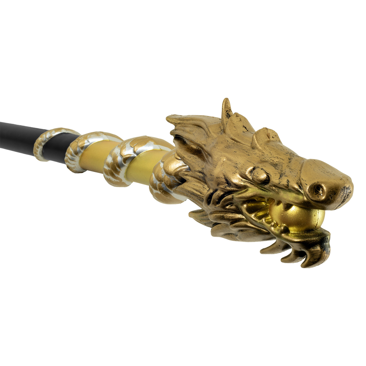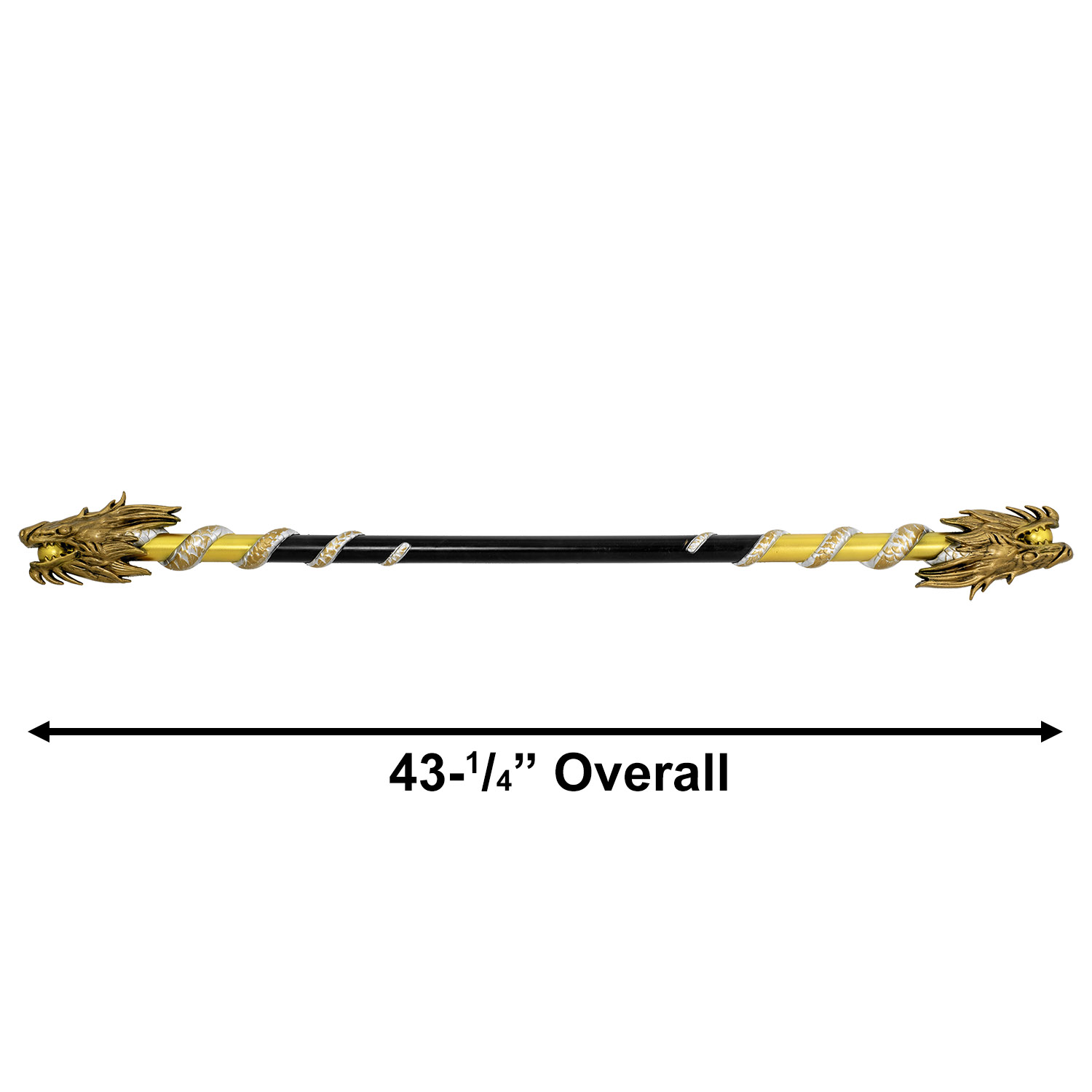 Product SummaryBring the power of Sung Jinwoo to life with this 43-1/4" Divine Quarterstaff Replica from Solo Leveling: ARISE. Expertly crafted as a full-size foam cosplay weapon, it captures the legendary SSR rank staff with striking dragon heads at both ends, each fiercely gripping a radiant orb. The high-density foam construction ensures safety and durability for dynamic cosplay performances, photoshoots, or display. Featuring a bold black shaft accented with gold sections and intricate silver dragon detailing, this replica delivers an immersive representation of the divine Light-element weapon. Perfect for fans seeking an authentic prop that stands out at conventions or in collections. Iconic Double Dragon Head DesignDetailed sculpted dragon heads adorn both ends of the quarterstaff, with open jaws clenched around glowing orbs inspired by the divine energy of the original weapon. The gold and silver accents create a majestic, high-fantasy appearance faithful to Sung Jinwoo's powerful staff. High Density Foam ConstructionBuilt from premium high-density foam, this replica offers a lightweight yet sturdy build ideal for safe cosplay battles, posing, and extended wear. The foam provides realistic weight distribution without the risks of rigid materials. Full Size 43-1/4 Inch ReplicaMeasuring 43-1/4 inches overall as shown in product dimensions, this quarterstaff delivers an accurate full-scale recreation. The balanced length allows for authentic handling and impressive visual impact in any Solo Leveling: ARISE cosplay setup. Premium Details for Cosplay ExcellenceThe black and gold shaft features wrapped silver dragon motifs along the length, adding depth and texture. This attention to detail makes the replica a standout choice for dedicated fans looking for quality beyond basic props. Features