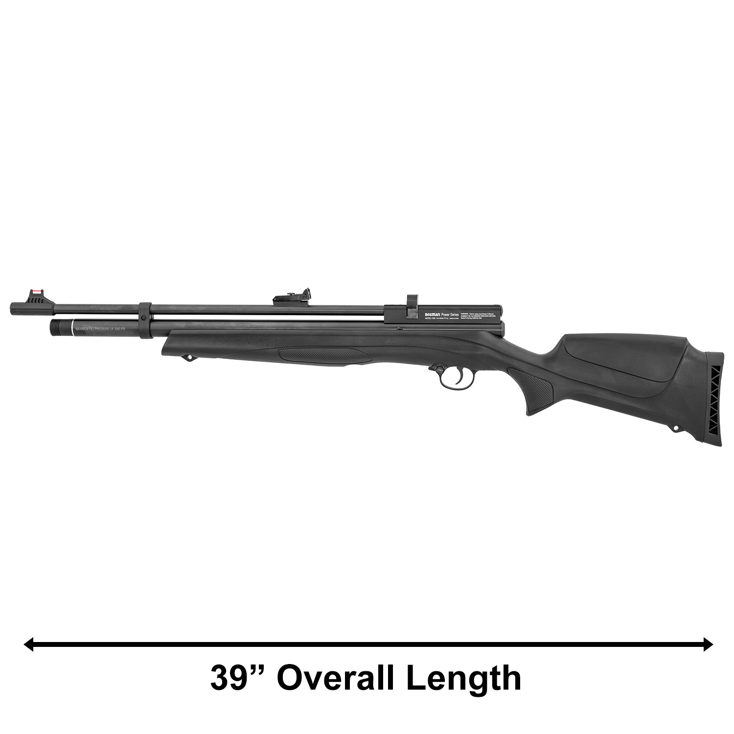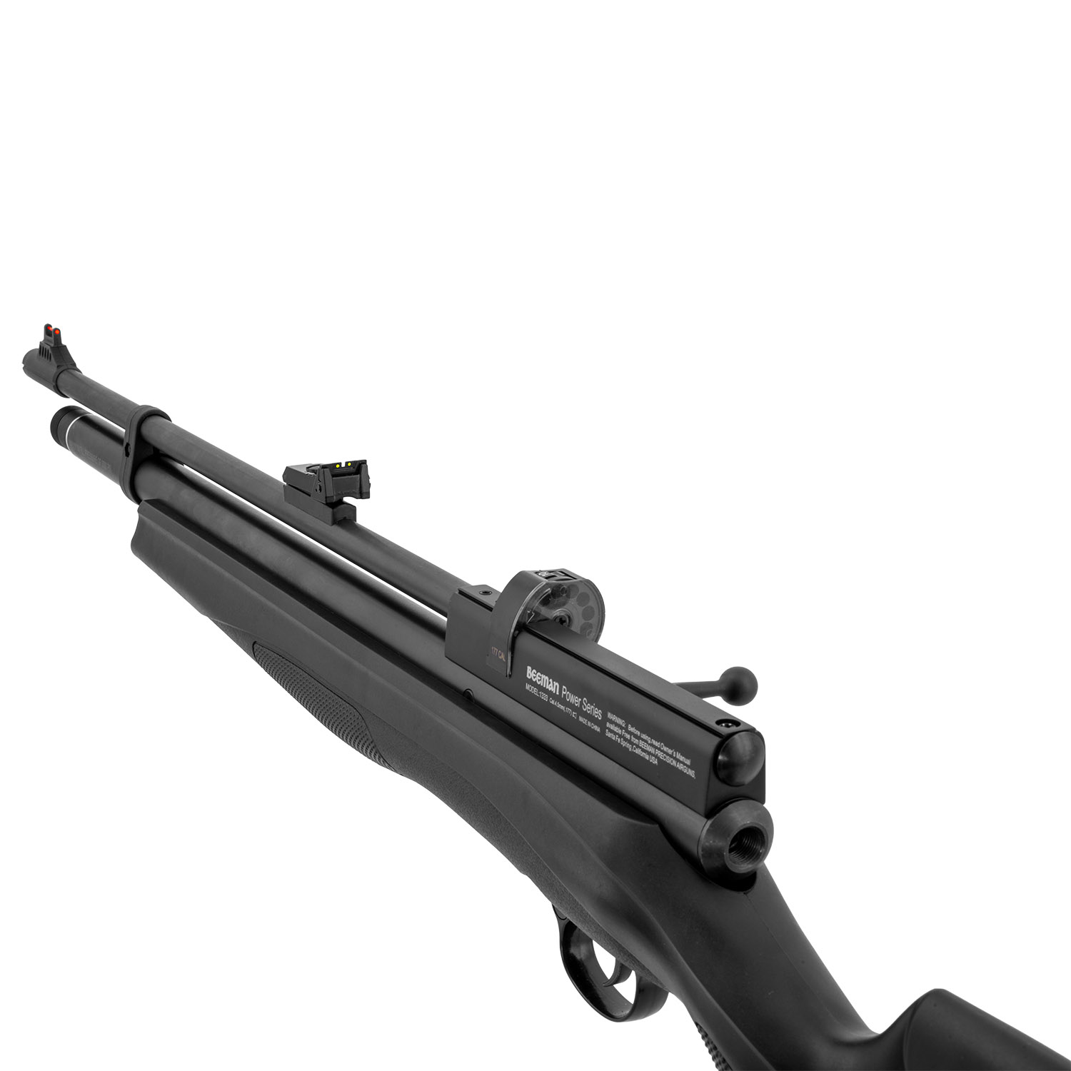 Product SummaryExperience exceptional accuracy and power with the Beeman Chief II Plus-S Model 1333 Synthetic Stock .177 Cal. PCP Air Rifle, designed for shooters seeking a reliable pre-charged pneumatic platform for plinking, pest control, and small game hunting. This sidelever-operated repeater delivers consistent performance with a precision rifled steel barrel that sends pellets downrange at velocities up to 1100 fps. The durable black synthetic stock provides a lightweight, weather-resistant build with checkered grip areas and a comfortable rubber butt pad for stable shouldering. Equipped with adjustable fiber optic sights and an 11mm dovetail rail, it offers versatile sighting options right out of the box. With up to 100 shots per fill from its high-capacity air reservoir, this PCP air rifle stands out as an affordable yet high-performing choice for both beginners and experienced enthusiasts. PCP Sidelever Action with 12-Round MagazineThe smooth sidelever bolt action makes cocking effortless while the rotary magazine holds 12 pellets in .177 caliber for rapid follow-up shots without frequent reloading. This repeater design ensures reliable feeding and quick cycling for extended shooting sessions. Precision Rifled Steel Barrel and High VelocityFeaturing a high-quality precision rifled steel barrel, this air rifle achieves muzzle velocities of up to 1100 fps with appropriate .177 pellets, delivering flat trajectories and excellent downrange energy for small game or target practice. Adjustable Fiber Optic Sights and Synthetic StockFixed fiber optic front sight paired with a fully adjustable rear sight provides quick target acquisition in various lighting conditions. The rugged polymer synthetic stock with rubber butt pad offers all-weather durability, ergonomic handling, and reduced weight for comfortable carry. High Capacity Air Tank and Included AccessoriesThe onboard air tank fills to 3500 PSI and supports up to 100 shots per fill, monitored conveniently via the built-in pressure gauge. This model includes two 12-round magazines along with an integrated moderator for quieter operation. Features