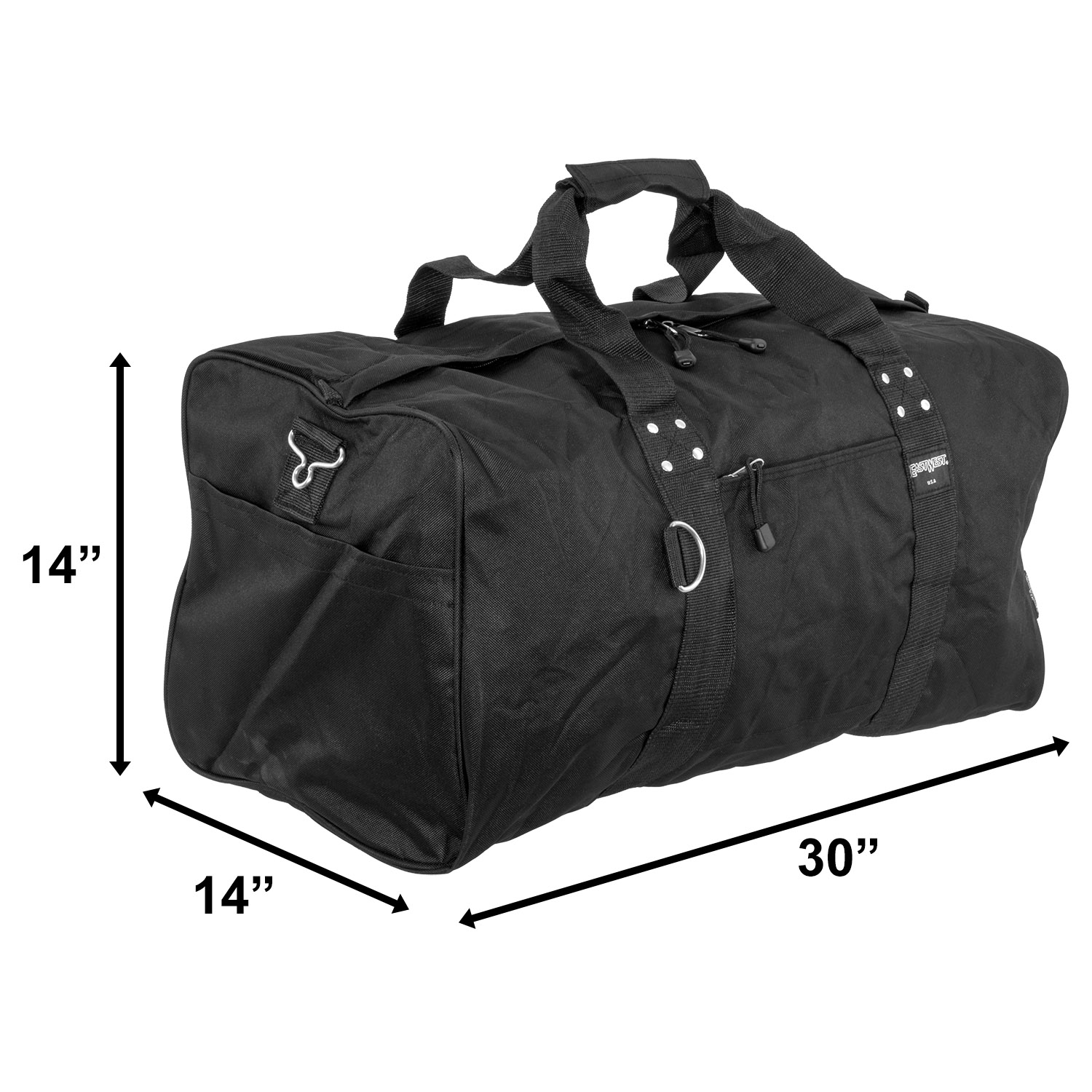 Product SummaryElevate your on-the-go essentials with the rugged East West USA 30" Sports Duffle Gear Gym Travel Bag, engineered for adventurers and fitness enthusiasts who demand reliability without compromise. Crafted from tough 600 Denier Polyester, this spacious duffle withstands the rigors of gym sessions, weekend getaways, or team sports with effortless style. Its expansive main compartment zips open wide for quick packing, complemented by smart side and front pockets that keep gear organized and accessible. Whether you're hauling workout clothes or travel necessities, the adjustable shoulder strap and padded handle ensure comfortable carrying on every journey. This duffle bag combines durability, functionality, and a sleek black finish to stand out in a sea of ordinary bags. 600 Denier Polyester Construction for Unmatched DurabilityBuilt tough with high-grade 600 Denier Polyester, this duffle bag resists tears and abrasions, making it the ideal companion for intense workouts or rugged travel. It delivers premium quality that outlasts competitors in demanding conditions. Spacious Zippered Main CompartmentThe large main compartment opens fully with a heavy-duty zipper, providing ample room for clothes, shoes, and gear while allowing easy visibility and access. Its square design maximizes storage without bulk, perfect for efficient packing on the fly. Multiple Pockets for Organized StorageFeaturing one zippered front pocket for valuables, plus two convenient side pockets for water bottles or quick-grab items, this bag keeps your essentials sorted and secure. No more rummaging, everything has its place for a stress-free experience. Adjustable Detachable Shoulder Strap and Padded HandleCarry in comfort with the padded Velcro handle for short hauls or the fully adjustable, detachable shoulder strap for longer treks. This versatile design adapts to your needs, reducing strain and enhancing portability. Versatile for Gym, Sports, and TravelFrom gym rats to road warriors, this 30-inch duffle excels in versatility, offering the capacity and toughness to handle daily commutes or extended trips. Its classic black aesthetic pairs seamlessly with any outfit or vehicle, ensuring it's a go-to choice for active lifestyles. Features