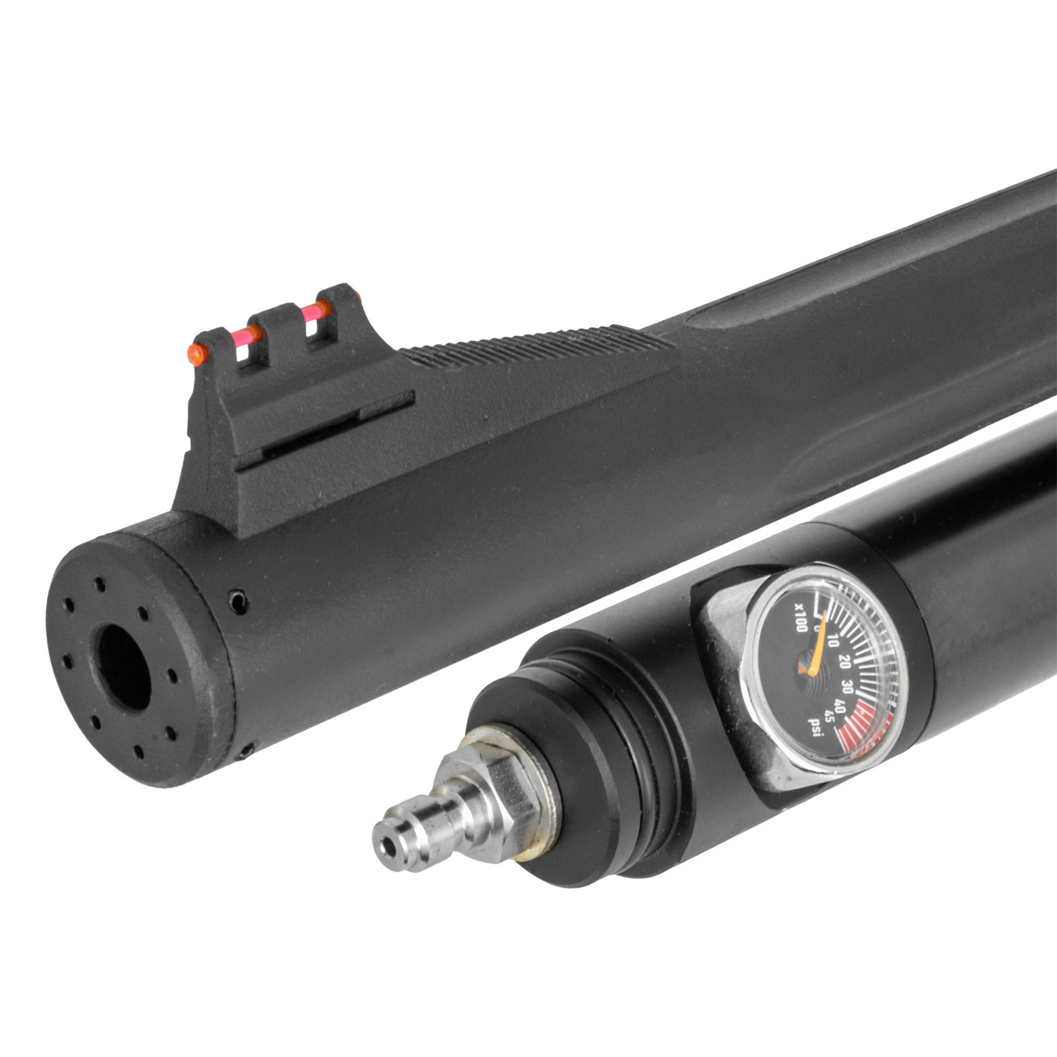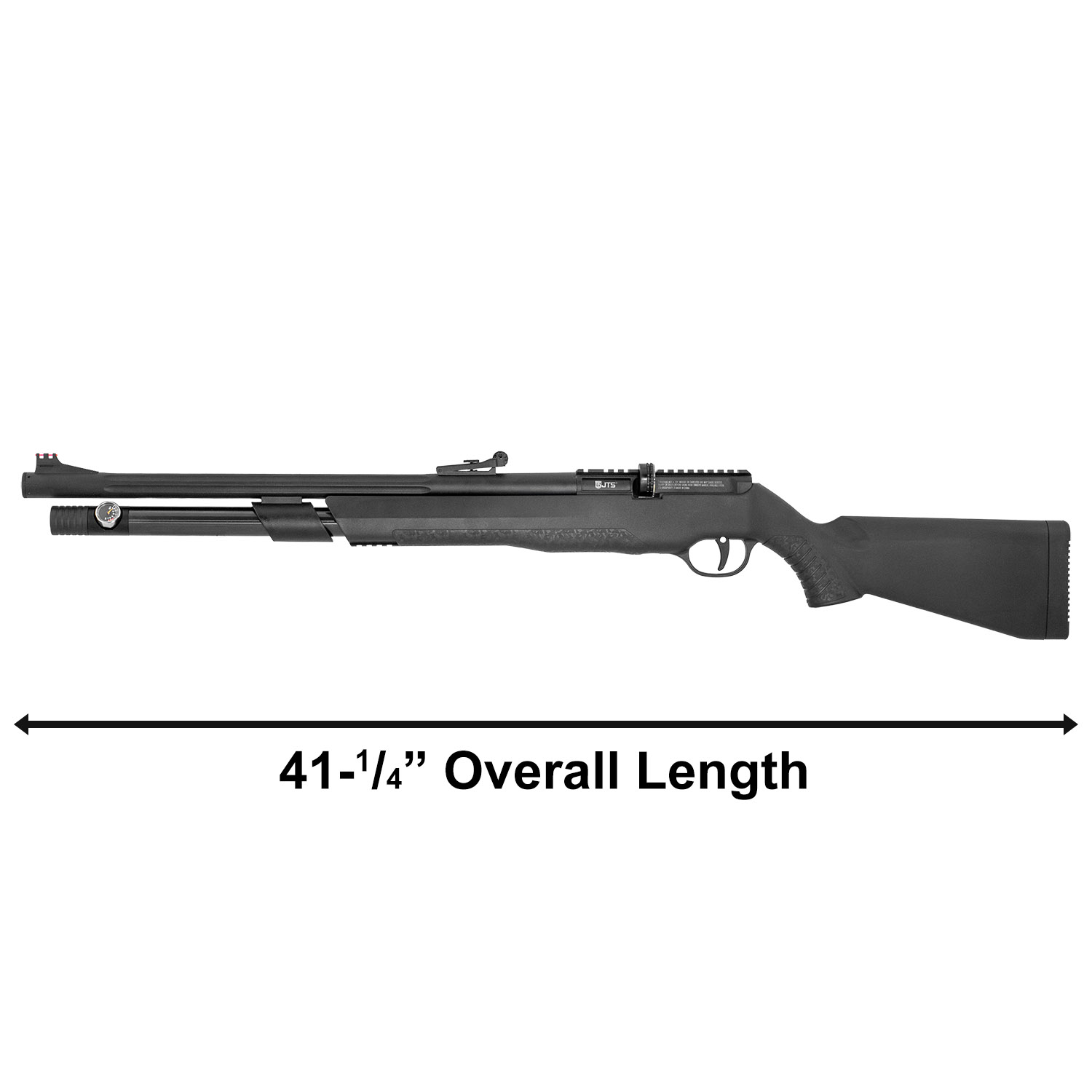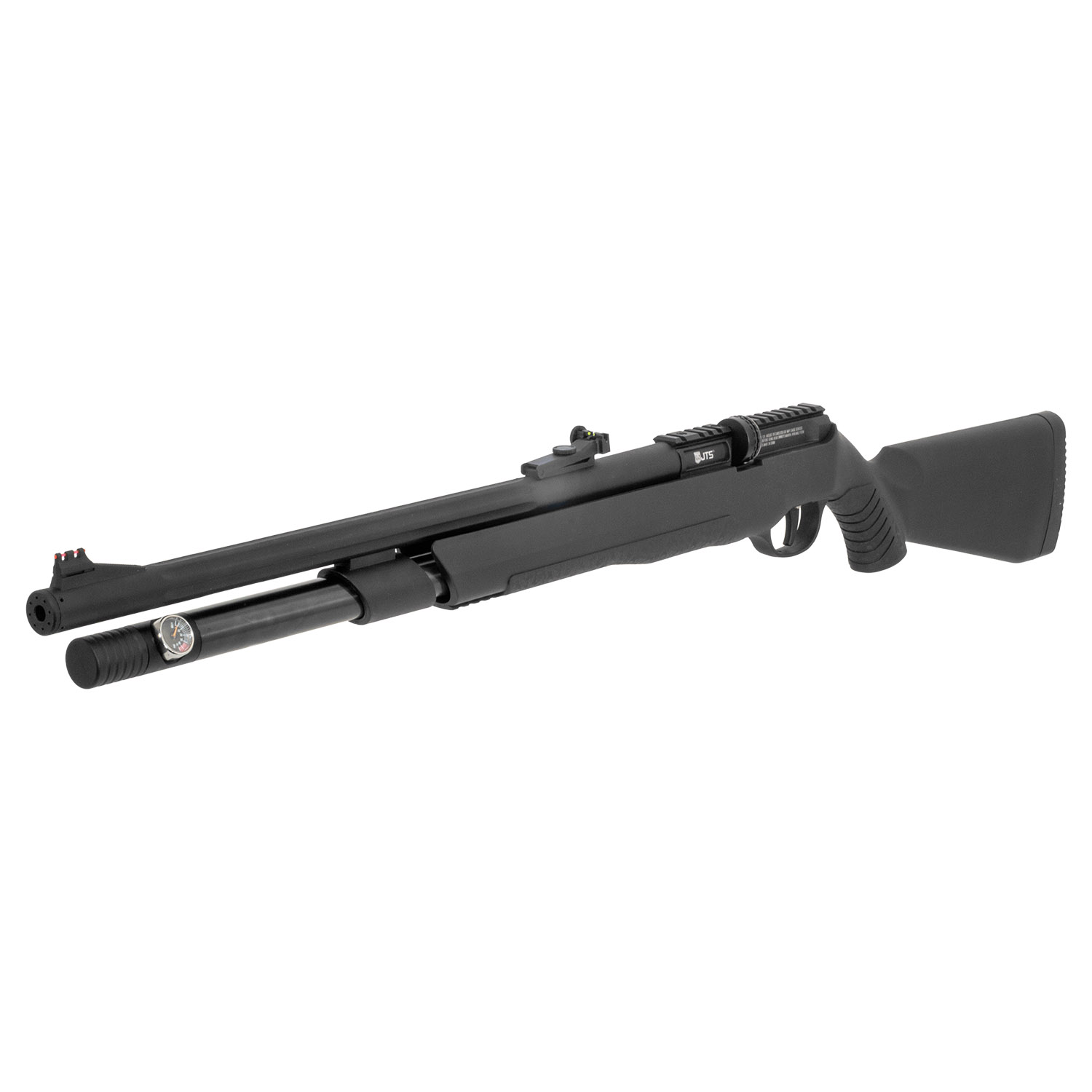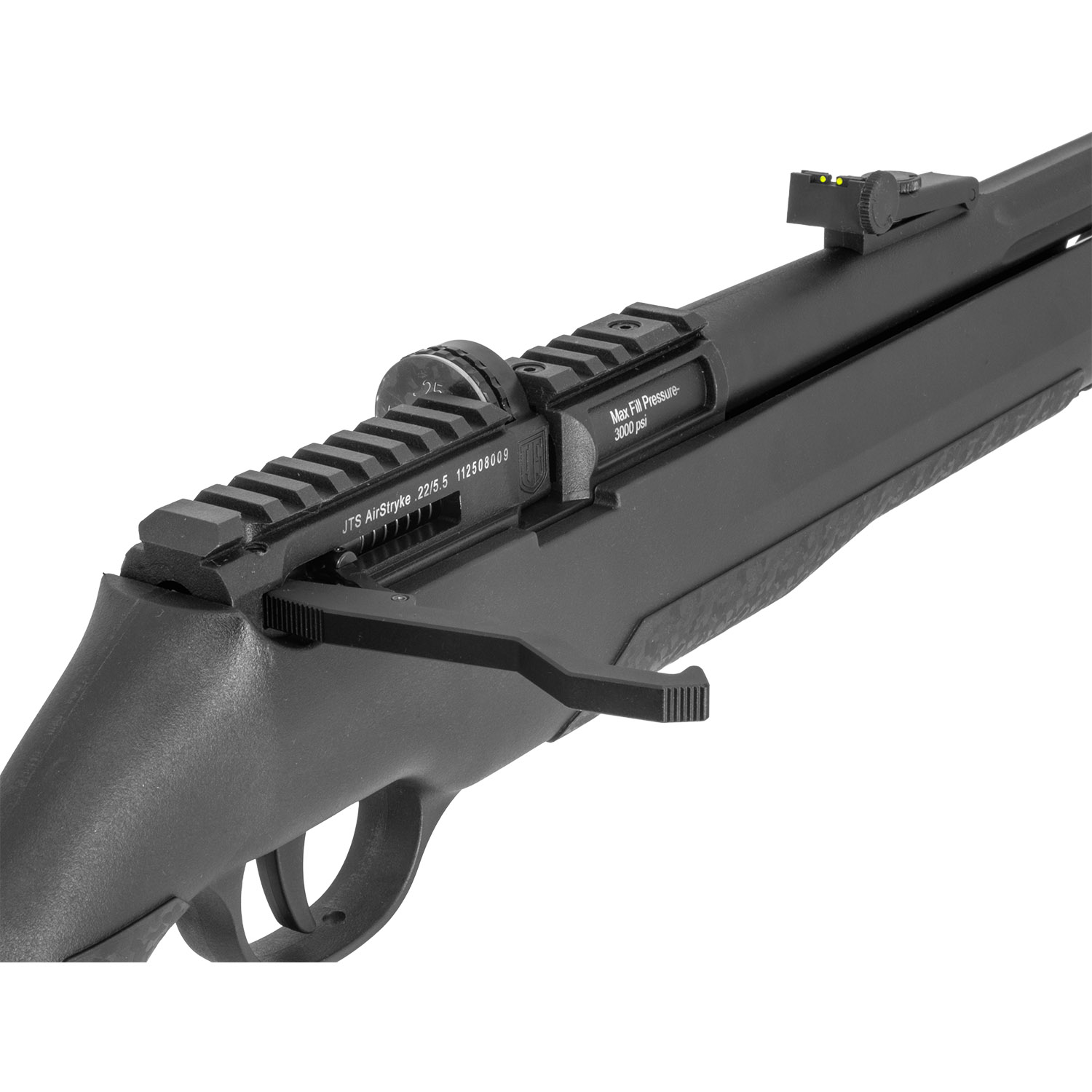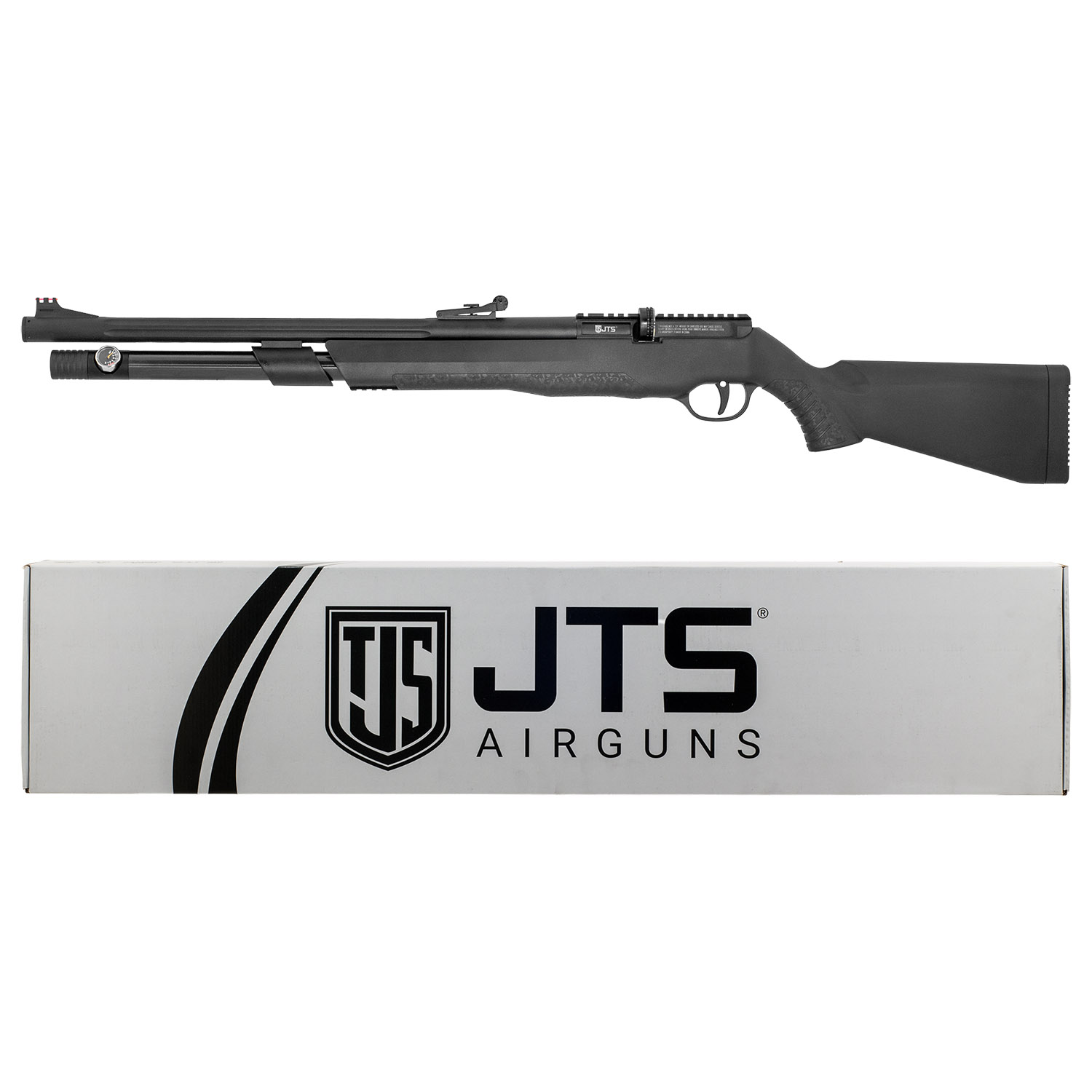 Product SummaryExperience exceptional value and consistent performance with the JTS Airguns JAGAS22 AirStryke .25 Cal. PCP Air Rifle, a regulated pre-charged pneumatic airgun designed for pest control, target shooting, and small game hunting. This compact and lightweight rifle delivers approximately 700 FPS velocity in .25 caliber, providing solid knockdown power with excellent shot consistency thanks to its built-in regulator and internal moderator for quieter operation. The durable synthetic stock features a textured grip and rubber buttpad for comfortable handling and reduced recoil feel during extended sessions. Equipped with fiber optic sights, a Picatinny rail for optics, and an adjustable trigger, it offers versatility right out of the box. With two 9-round magazines included and a user-friendly side-lever action, this air rifle combines pro-level features at an affordable price, making it an ideal choice for both beginners and experienced shooters seeking reliability in the field. Regulated PCP with 3000 PSI Max Fill PressureThe fully regulated pre-charged pneumatic system maintains consistent velocity for shot-to-shot accuracy, while the 200cc cylinder and 3000 PSI max fill pressure deliver up to approximately 43 shots per fill in .25 caliber, perfect for extended shooting without frequent refills. Powerful .25 Caliber PerformanceAchieving around 700 FPS with standard 25.39 grain pellets, this .25 caliber model provides approximately 27.63 foot-pounds of energy, offering superior stopping power for pesting and small game compared to smaller calibers, all with a rifled barrel for enhanced precision. Durable Synthetic Stock and Ergonomic DesignThe rugged all-weather synthetic stock includes a textured forearm for secure grip, a comfortable thumbhole-style pistol grip, and a ridged rubber buttpad to absorb felt recoil and improve stability during aiming and shooting. Adjustable Trigger and Integrated FeaturesAn adjustable trigger allows customization for a crisp, predictable break, complemented by open fiber optic sights and a top Picatinny rail ready for scopes or red dots, plus an integrated pressure gauge for easy monitoring. Quiet Operation and Included AccessoriesThe built-in moderator reduces noise for discreet use in backyard or field settings, and the package comes complete with two 9-round rotary magazines for quick reloading and minimal downtime during practice or hunting. Features