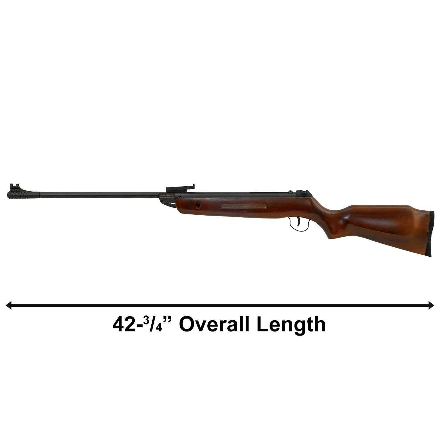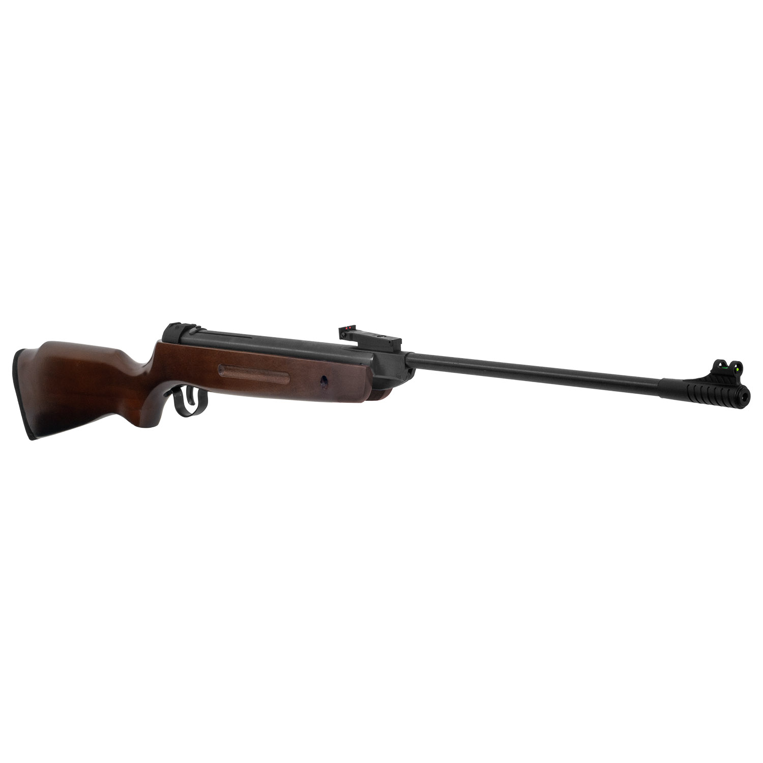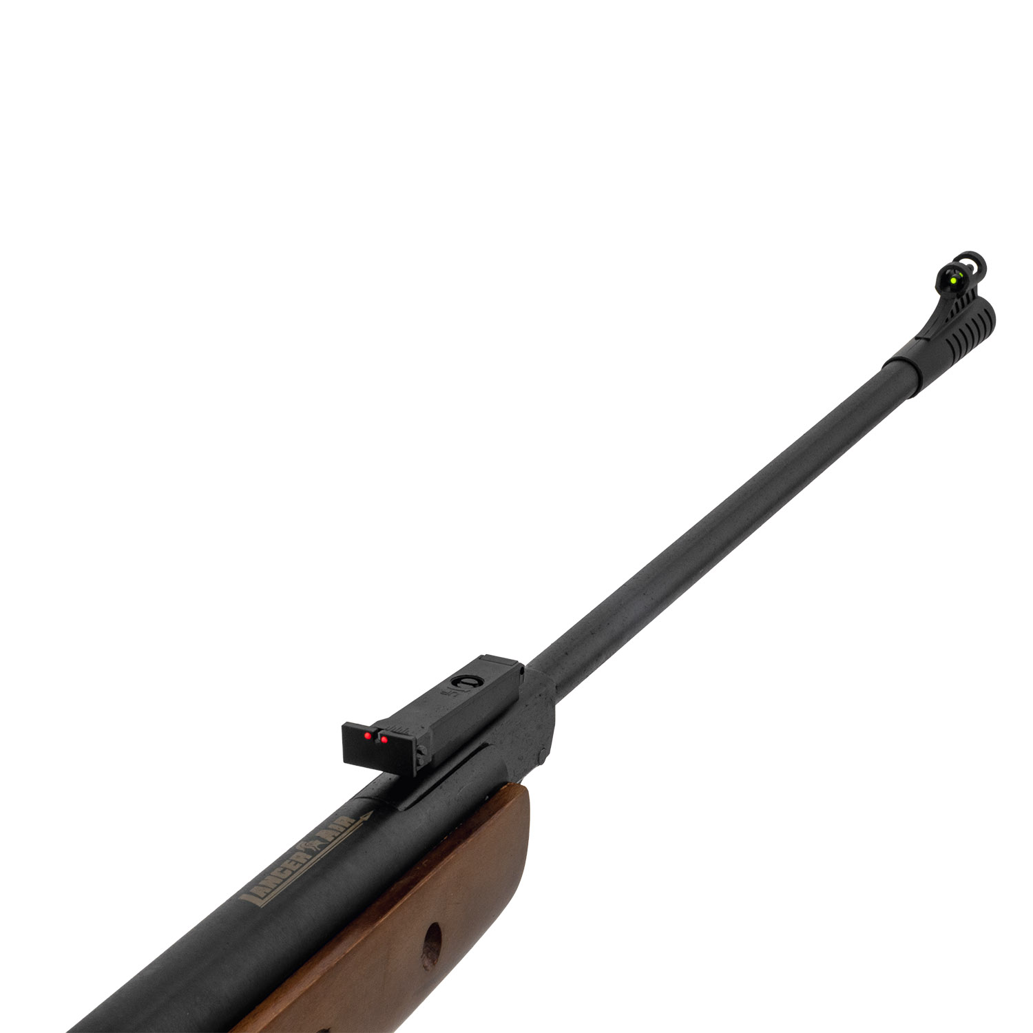 Product SummaryExperience superior precision and power with the Lancer Air LTA-01W .22 Caliber Break Barrel Pellet Air Rifle, engineered for enthusiasts who demand reliability in every shot. This spring piston powerhouse delivers blistering speeds up to 1200 FPS, making it a top choice for small game hunting or honing skills at the range. Its handsome hardwood stock offers ergonomic comfort and all-weather resilience that stands up to outdoor adventures. The rifled steel barrel ensures exceptional accuracy over extended distances, while the break barrel design provides effortless cocking with minimal effort. Ideal for both novice shooters and seasoned marksmen, this rifle combines timeless aesthetics with modern performance to elevate your shooting pursuits. Blistering 1200 FPS Velocity for Unmatched PowerPowered by a high-performance spring piston system, the LTA-01W propels .22 caliber pellets at velocities reaching 1200 FPS, delivering the forceful punch needed for effective small game hunting or penetrating targets with ease. Precision Rifled Steel Barrel for Long-Range AccuracyThe full metal, rifled steel barrel stabilizes projectiles for superior trajectory control, allowing shooters to achieve tight groupings even at greater distances and making it a standout for competitive target practice. Ergonomic Hardwood Stock ConstructionCrafted from rich hardwood for a classic feel, the stock provides a secure, comfortable grip that absorbs recoil while ensuring longevity in diverse shooting environments. Effortless Break Barrel Operation and Manual SafetyThe intuitive break barrel mechanism requires light cocking force for quick follow-up shots, complemented by an integrated manual safety to prevent accidental discharge, promoting safe and seamless handling on every outing. Adjustable Fiber Optic Sights for Quick Target AcquisitionEquipped with fiber optic iron sights that adjust for windage and elevation, this rifle offers clear, low-light visibility and rapid sighting, empowering users to lock on targets with confidence in varying conditions. Features