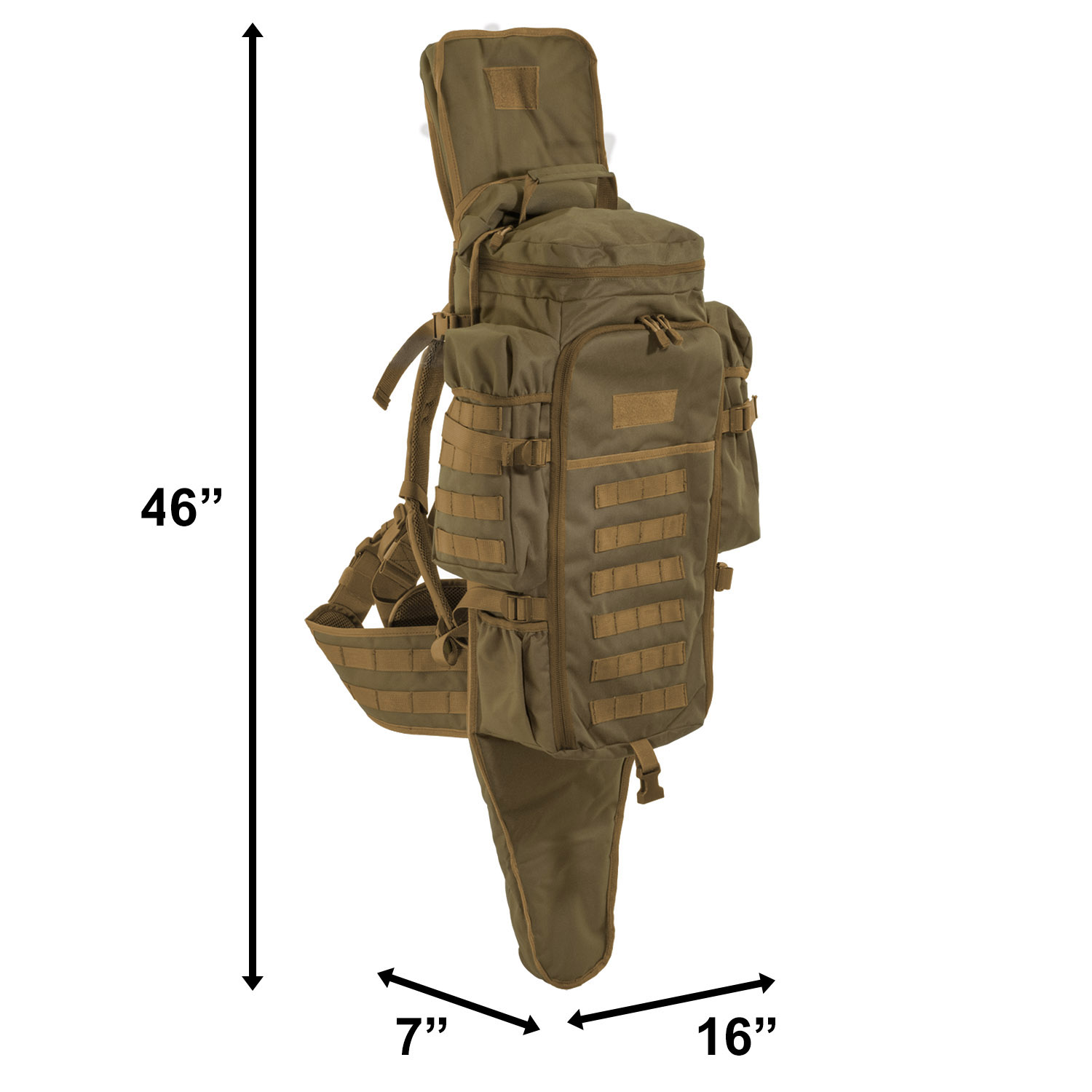 Product SummaryGear up for demanding outdoor pursuits with the Lancer Tactical Rifle Bag MOLLE Hunting Backpack Military Rucksack, a robust solution for transporting firearms and essentials securely. This tactical pack integrates a dedicated rifle sleeve with expansive storage compartments, making it ideal for hunters, airsoft players, and military enthusiasts who need reliable gear on the move. Built from high-density 600 Denier nylon, it offers exceptional resistance to tears, abrasions, and weather, ensuring longevity in harsh environments. The adjustable shoulder straps and padded back panel provide ergonomic comfort during extended carry, while the included safety whistle adds an extra layer of preparedness for emergencies. With its versatile design, this rucksack stands out by combining functionality, customization options, and discreet transport capabilities that surpass standard backpacks. Durable 600 Denier Nylon ConstructionCrafted from premium 600 Denier nylon fabric, this backpack delivers superior strength and water resistance, protecting your gear from the elements and rough handling during hunts or tactical operations. Integrated Rifle Storage SleeveThe built-in padded rifle compartment securely holds firearms up to 45.3 inches long, allowing for discreet and protected transport without the need for separate cases. MOLLE Webbing System for CustomizationExtensive MOLLE webbing across the exterior enables easy attachment of pouches, tools, and accessories, letting you tailor the pack to your specific mission or adventure needs. Comfortable and Adjustable DesignFeaturing padded shoulder straps, a sternum buckle, and a breathable back panel, this rucksack ensures a snug, fatigue-reducing fit for all-day comfort on the trail or in the field. Built-In Safety Whistle for EmergenciesAn integrated safety whistle on the chest strap provides quick access in critical situations, enhancing your preparedness and setting this pack apart for safety-conscious users. Features