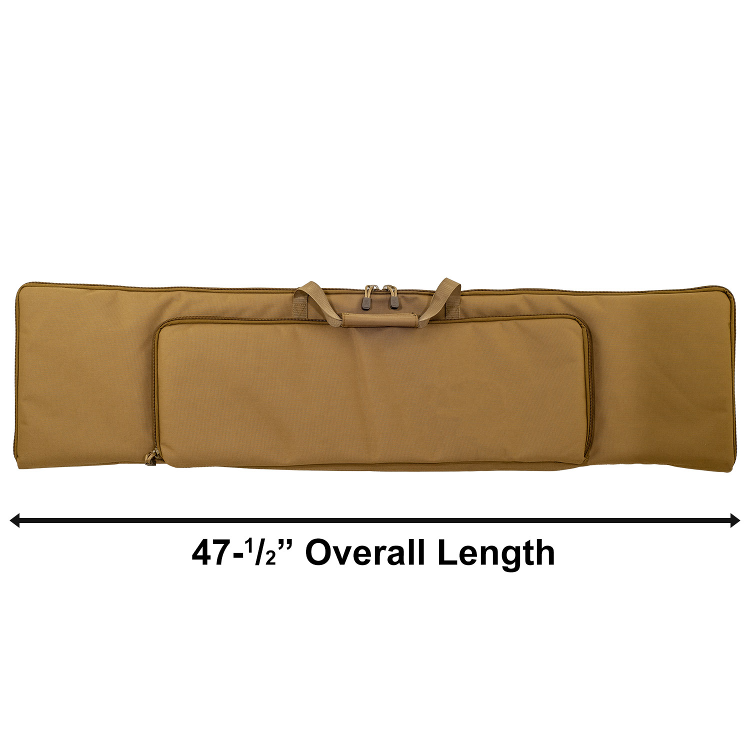 Product SummaryDiscover the Lancer Tactical 47" Nylon Gun Bag in versatile Coyote Brown, engineered for airsoft players seeking reliable transport and storage solutions. This tactical bag combines rugged 600D nylon construction with high-density foam padding to shield your rifles from impacts and daily wear. Capable of holding up to two guns securely, it features internal Velcro straps that prevent shifting during movement, ensuring stability on the go. Adjustable shoulder straps enhance portability, making it easy to carry to the field or range without strain. Ideal for enthusiasts who demand both protection and convenience, this bag stands out with its spacious design and thoughtful details that outpace standard cases. Durable 600D Nylon ConstructionCrafted from tough 600D nylon, this gun bag offers exceptional resistance to tears, abrasions, and environmental elements, providing long-lasting performance for frequent use in airsoft scenarios. High-Density Foam Padding for Enhanced ProtectionThe interior is lined with thick high-density foam that absorbs shocks and cushions your rifles against dings or scratches, delivering superior safeguarding compared to basic fabric carriers. Internal Velcro Straps for Rifle StabilityConvenient Velcro straps inside secure one or two rifles in place, minimizing movement and allowing quick access while maintaining organization for accessories in the secondary compartment. Spacious Dual-Compartment DesignWith an overall length of 47-1/2 inches and a secondary pocket measuring 28" x 9.5", this bag accommodates most airsoft rifles alongside magazines or gear, offering more capacity than single-gun options. Adjustable Shoulder Straps and Carry HandlesEquipped with padded shoulder straps and reinforced handles, the bag ensures comfortable transport over long distances, appealing to players who prioritize ease during events or travel. Features