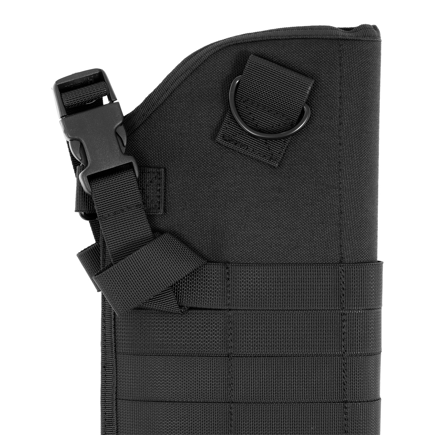Product SummaryElevate your tactical gear with the Lancer Tactical 600D Polyester 29" Shotgun Holster, designed for seamless transport and protection of your airsoft shotgun. Crafted from rugged 600 Denier Polyester, this holster withstands the rigors of intense gameplay while offering universal compatibility with most barrels under 30 inches for effortless versatility. Its innovative double-sided MOLLE straps enable quick attachment to vests, backpacks, or belts, ensuring you're always ready for action. The included removable quick-release adjustable strap adds customizable carry options, making it ideal for range sessions or field ops. Whether you're a competitive airsoft player or a tactical enthusiast, this holster combines durability, functionality, and style to keep your shotgun secure and accessible. Rugged 600D Polyester ConstructionBuilt from high-strength 600 Denier Polyester, this holster delivers exceptional tear resistance and weatherproofing, safeguarding your shotgun against impacts and elements during demanding missions. Its reinforced stitching and padded interior provide superior protection without adding unnecessary bulk to your loadout. Universal Fit for Barrels Under 30 InchesEngineered for broad compatibility, this 29-inch holster accommodates most airsoft shotguns with barrels up to 30 inches, offering a snug, non-slip fit that prevents shifting during movement. Say goodbye to ill-fitting carriers and hello to reliable performance across your favorite models. Double-Sided MOLLE Straps for Versatile MountingFeaturing robust double-sided MOLLE webbing, the holster integrates seamlessly with any PALS-compatible system, allowing horizontal or vertical positioning on your tactical vest or pack. This modular design maximizes your gear configuration options for personalized comfort and efficiency. Removable Quick-Release Adjustable StrapThe included quick-release strap offers adjustable length for shoulder or sling carry, with a fast-detach buckle for instant access in high-pressure scenarios. Easily removable when not needed, it enhances mobility without compromising on the holster's standalone utility. Compact and Lightweight DesignMeasuring 29 inches in length and 6 inches in width, this lightweight holster balances protection with portability, ensuring it won't weigh you down on extended outings. Its black finish blends discreetly into any tactical ensemble, making it a go-to choice for stealthy operators. Features