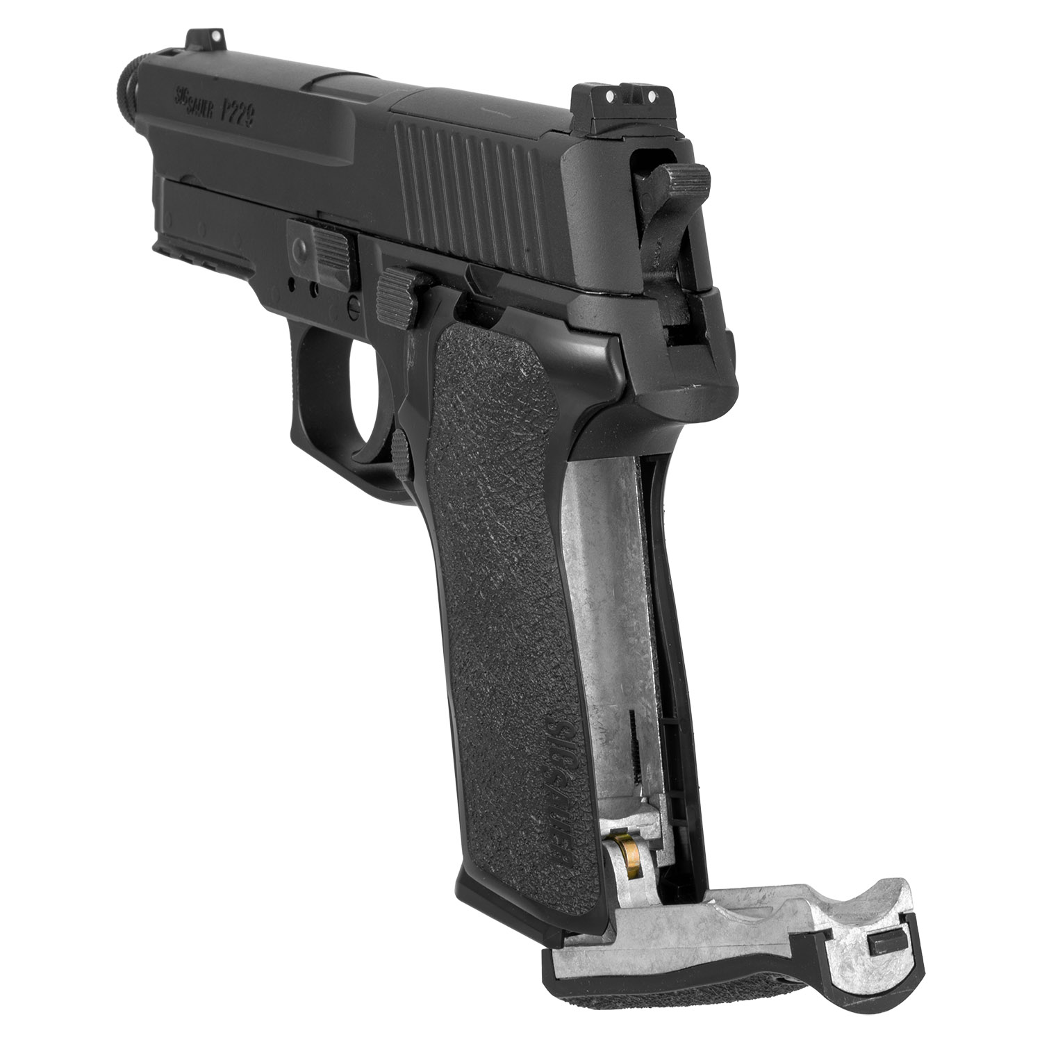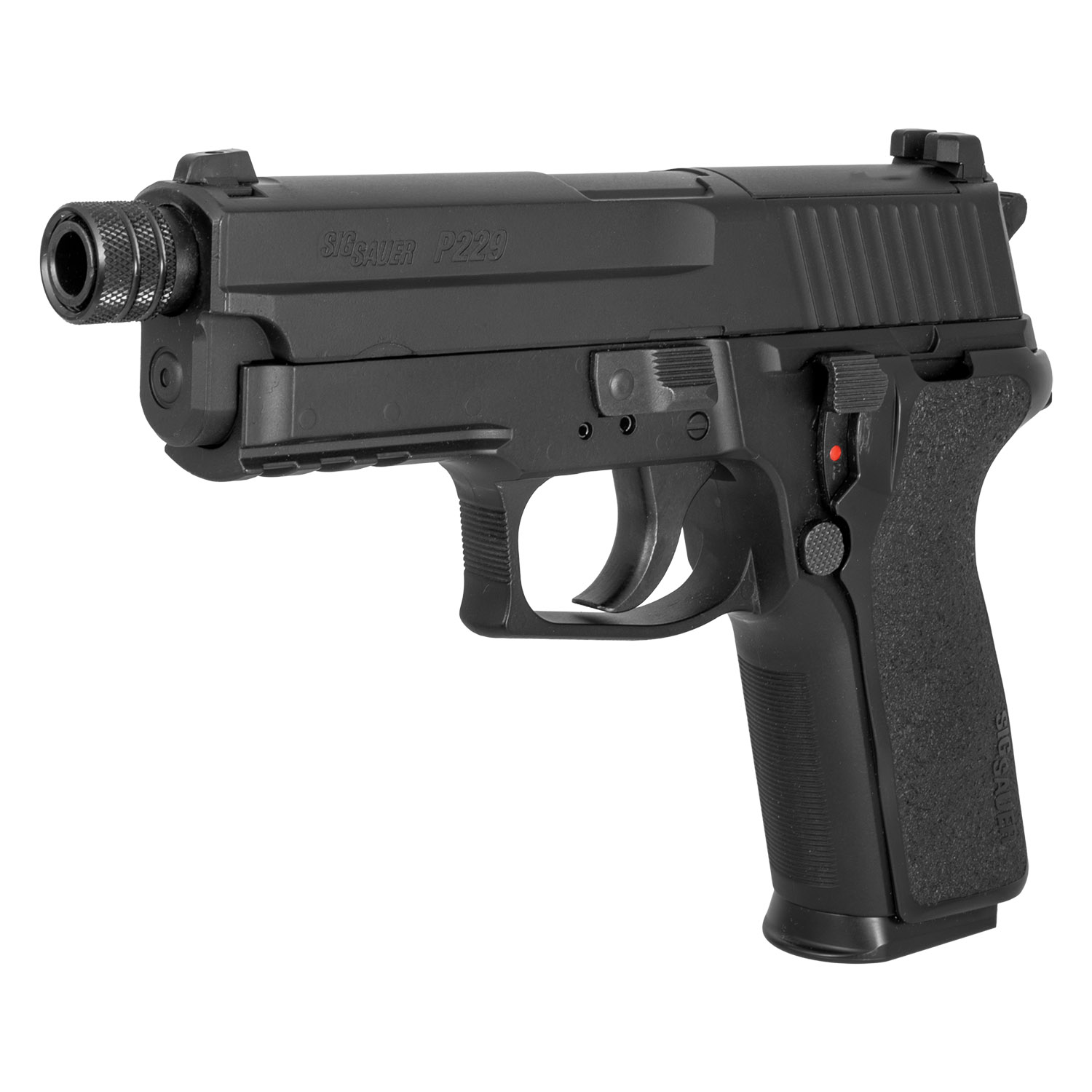Product SummaryExperience authentic SIG SAUER performance with this refurbished Sig Sauer P229 .177 Cal. BB & Pellet CO2 Blowback Air Pistol, designed for shooters seeking realistic training and backyard plinking fun. This full metal air pistol closely replicates the centerfire P229 in weight, balance, and controls for an immersive shooting experience. It fires both .177 caliber steel BBs and lead pellets with a powerful blowback action that delivers satisfying recoil and semi-automatic cycling. The patented cam-lever CO2 system allows quick, tool-free cartridge changes while the rifled barrel ensures improved accuracy. Perfect for target practice, skill development, or collectors, this refurbished model offers exceptional value with the same quality construction and performance. Full Metal Construction with Authentic FeelBuilt with full metal slide and frame, this P229 air pistol provides realistic weight and balance that mirrors the original firearm, enhancing training authenticity and providing a solid, durable platform for extended use. Versatile .177 Caliber Ammunition CompatibilityCapable of firing either .177 cal (4.5mm) steel BBs or lead pellets, this CO2 pistol offers flexibility for different shooting preferences and targets while maintaining strong performance across both ammo types. Strong Blowback Action and Semi-Auto OperationThe advanced blowback system generates realistic recoil and automatically recocks the hammer for fast follow-up shots, delivering an engaging semi-automatic shooting experience that closely simulates centerfire operation. Patented Cam-Lever CO2 Loading SystemFeaturing SIG SAUER's innovative cam-lever design, this air pistol allows easy one-handed CO2 cartridge insertion and removal without tools, concealed neatly within the ergonomic E2-style grip. High Velocity Performance up to 380 FPSAchieving muzzle velocities of up to 380 FPS with appropriate .177 caliber pellets, this powerful CO2 air pistol delivers impressive speed and energy suitable for accurate target shooting and plinking. Features