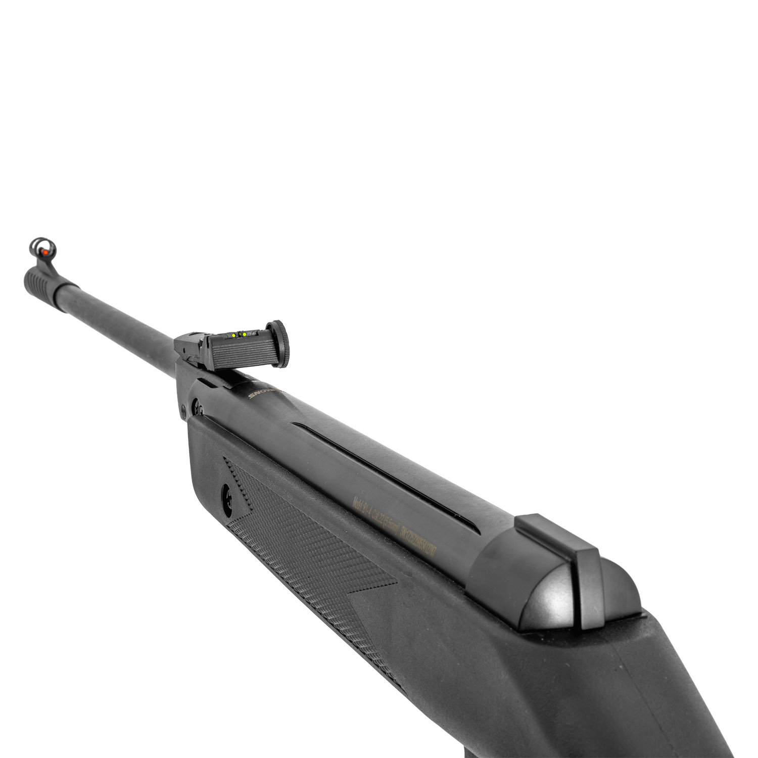 Product SummaryExperience dependable backyard plinking and small game control with the Snowpeak B1-4P .22 Cal. Break Barrel Pellet Rifle, a compact and user-friendly air rifle built for accuracy and ease of use. This single-shot spring-powered rifle features a precision rifled steel barrel that delivers consistent pellet performance shot after shot. Its synthetic stock with rubber butt pad provides comfortable handling and effective recoil absorption during extended sessions. Equipped with adjustable fiber optic sights, the B1-4P allows quick target acquisition. At just 38-1/4 inches overall, it offers excellent maneuverability for beginners and seasoned shooters alike while maintaining solid power in .22 caliber. Break Barrel Single Shot ActionThe reliable break barrel design allows simple cocking and loading for each shot, making this rifle straightforward to operate without complicated mechanisms. This single-shot system ensures focus on proper technique and delivers repeatable performance ideal for target practice and pest control. Precision Rifled .22 Caliber Steel BarrelA high-quality rifled steel barrel in .22 caliber enhances pellet stability and accuracy at short to medium ranges. This design maximizes velocity and downrange energy, helping shooters achieve tighter groups compared to smoothbore alternatives. Adjustable Fiber Optic SightsBright fiber optic front and rear sights with contrasting colors improve visibility and speed up aiming. The fully adjustable rear sight lets users fine-tune elevation and windage for precise zeroing on their favorite pellets. Synthetic Stock with Rubber Butt PadThe durable synthetic stock offers weather resistance and ergonomic shaping for a secure grip in all conditions. A thick rubber butt pad absorbs recoil effectively, reducing shooter fatigue and improving comfort during longer shooting sessions. Features