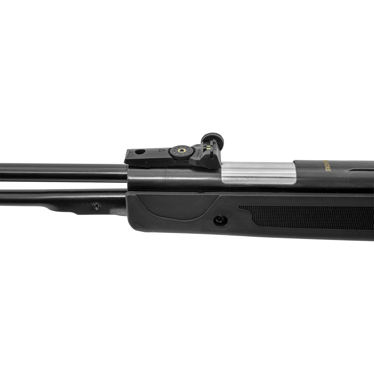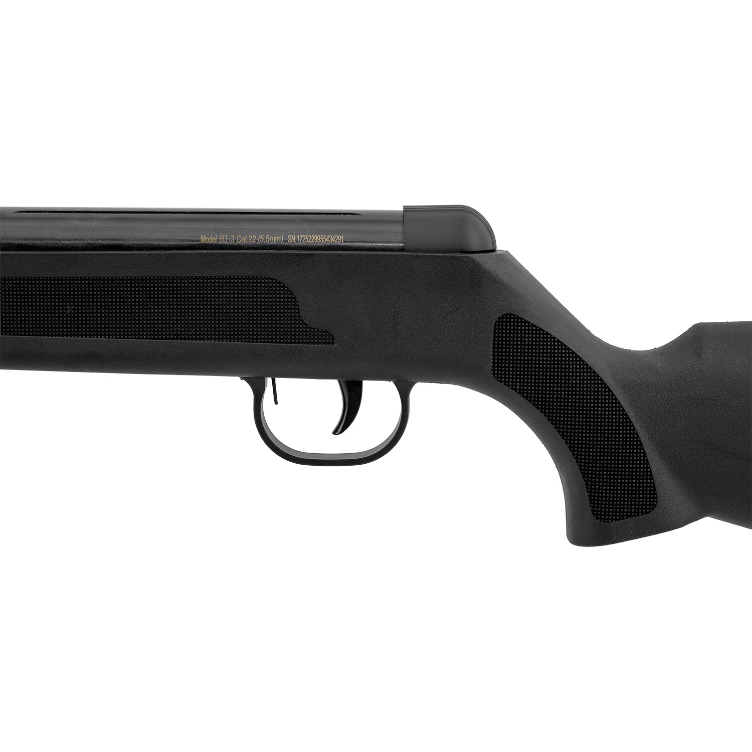 Product SummaryExperience powerful and accurate shooting with the Snowpeak B3-3P .22 Cal. Underlever Pellet Rifle, a dependable airgun designed for target practice, plinking, and small game hunting. This single-shot rifle combines smooth underlever cocking action with a precision rifled steel barrel to deliver consistent performance shot after shot. Equipped with adjustable fiber optic sights, it allows for quick and precise aiming even in varying light conditions. The synthetic stock with rubber butt pad provides a comfortable, non-slip grip and helps absorb recoil for extended shooting sessions. Measuring 40-3/4 inches overall, this lightweight yet robust air rifle offers excellent balance and handling for shooters of all experience levels. Underlever Single Shot ActionThe reliable underlever cocking mechanism offers smooth and effortless operation, making it easy to load and prepare each .22 caliber pellet for accurate single-shot firing with consistent power delivery. .22 Caliber Precision Rifled Steel BarrelFeaturing a high-quality precision rifled steel barrel, this air rifle enhances pellet stability and delivers tight groupings with a muzzle velocity of up to 800 fps for effective performance at short to medium ranges. Adjustable Fiber Optic SightsEquipped with bright fiber optic front and rear sights that are fully adjustable for windage and elevation, allowing shooters to achieve fast target acquisition and fine-tune accuracy in different lighting environments. Synthetic Stock with Rubber Butt PadThe durable synthetic stock features ergonomic texturing for a secure hold, while the integrated rubber butt pad reduces felt recoil and provides enhanced shoulder comfort during prolonged use. Features